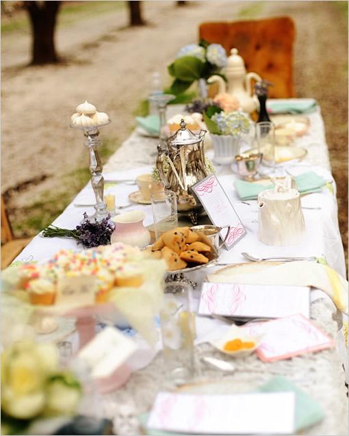 {Twinkle light alternatives: love the clean, whimsical look of the hanging lanterns - while they might be a little tricky to hang, the lit mason jars are simple to construct - a little colored tissue paper and (battery powered) votive candles will do the trick. If you're looking for just a little light accent, try using wire to hang glass votive holders & place your tea lights in the them.}